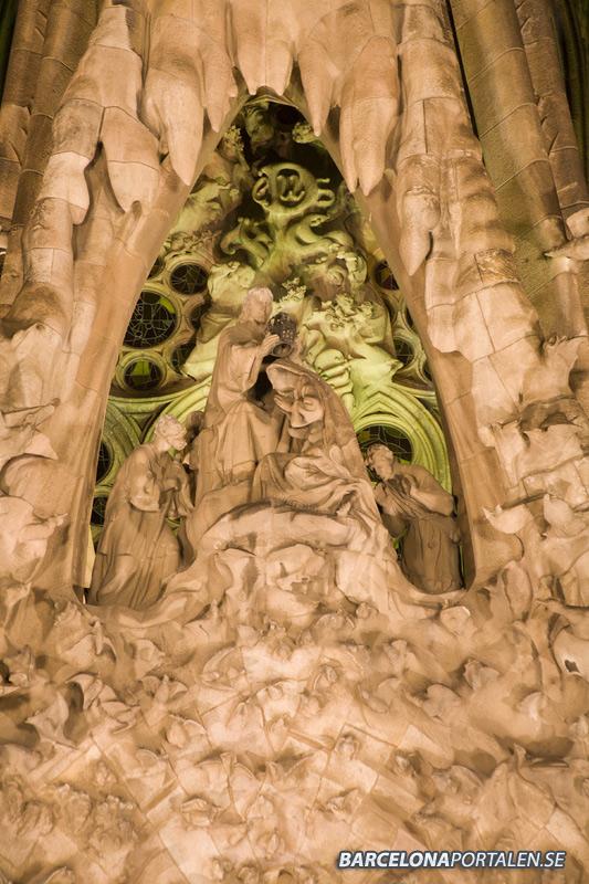 Detalj från västra fasaden - kröning av hl. Mary - Antonio Gaudi